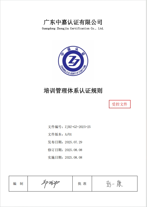 上述认证规则归广东中嘉认证有限公司所有,广东中嘉认证有限公司对其拥有最终解释权。如需获取全文认证规则请与以下联系方式获取:
