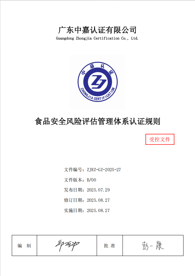 食品安全风险评估管理体系认证