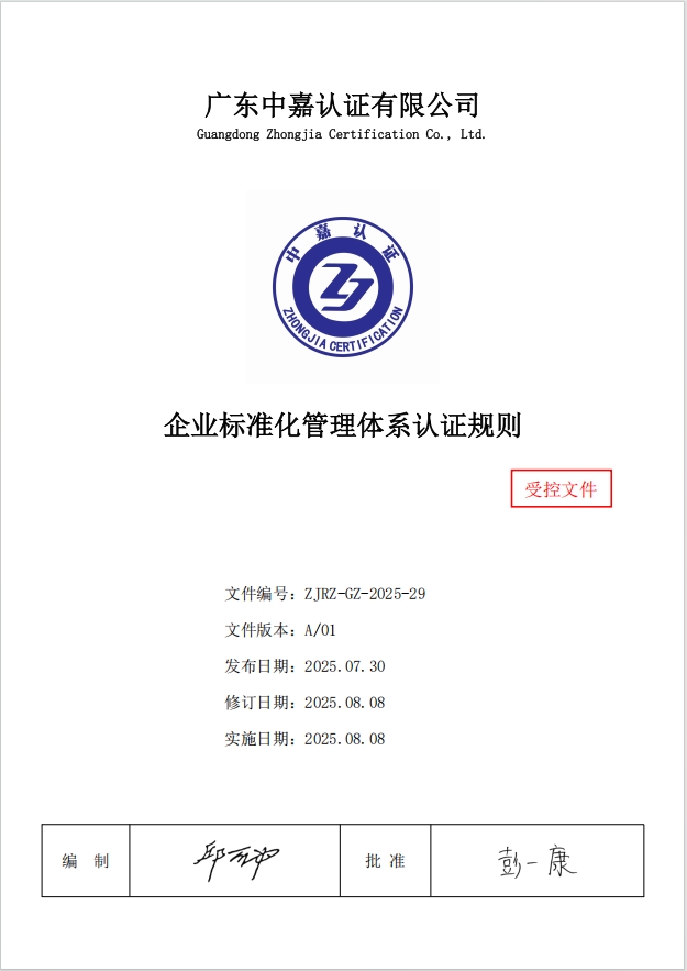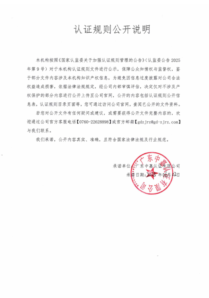 上述认证规则归广东中嘉认证有限公司所有,广东中嘉认证有限公司对其拥有最终解释权。如需获取全文认证规则请与以下联系方式获取: