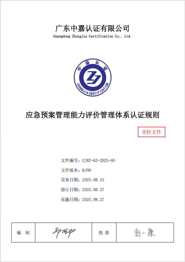 应急预案管理能力管理体系认证