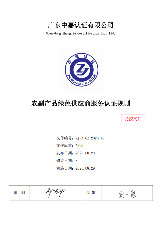 名称:农副产品绿色供应商服务认证规则