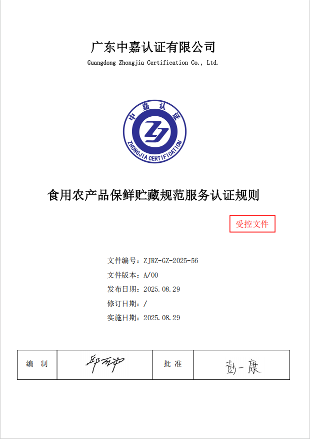 名称:食用农产品保鲜贮藏规范服务认证规则
