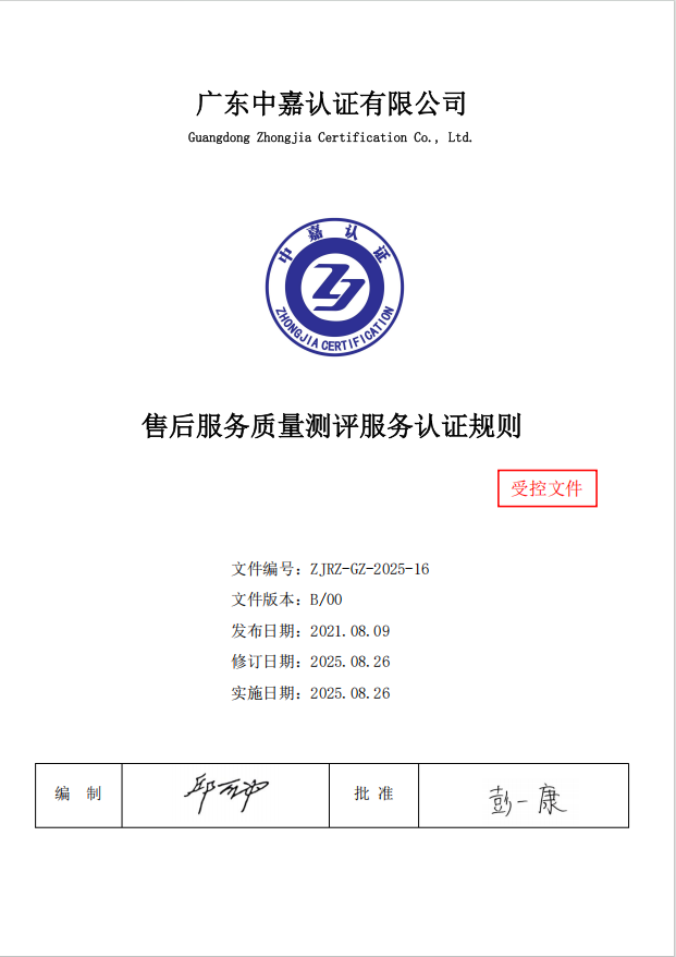 上述认证规则归广东中嘉认证有限公司所有,广东中嘉认证有限公司对其拥有最终解释权。如需获取全文认证规则请与以下联系方式获取: