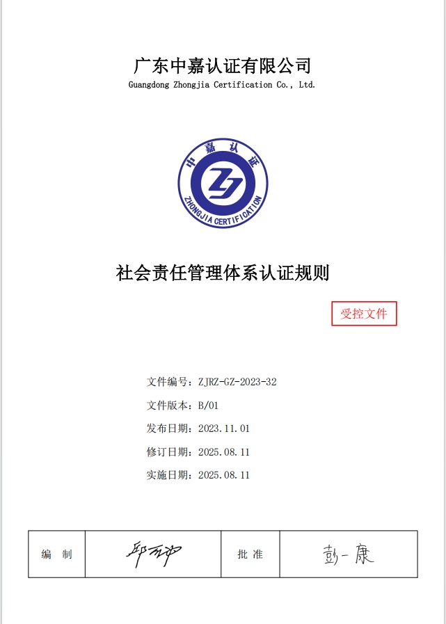 上述认证规则归广东中嘉认证有限公司所有,广东中嘉认证有限公司对其拥有最终解释权。如需获取全文认证规则请与以下联系方式获取: